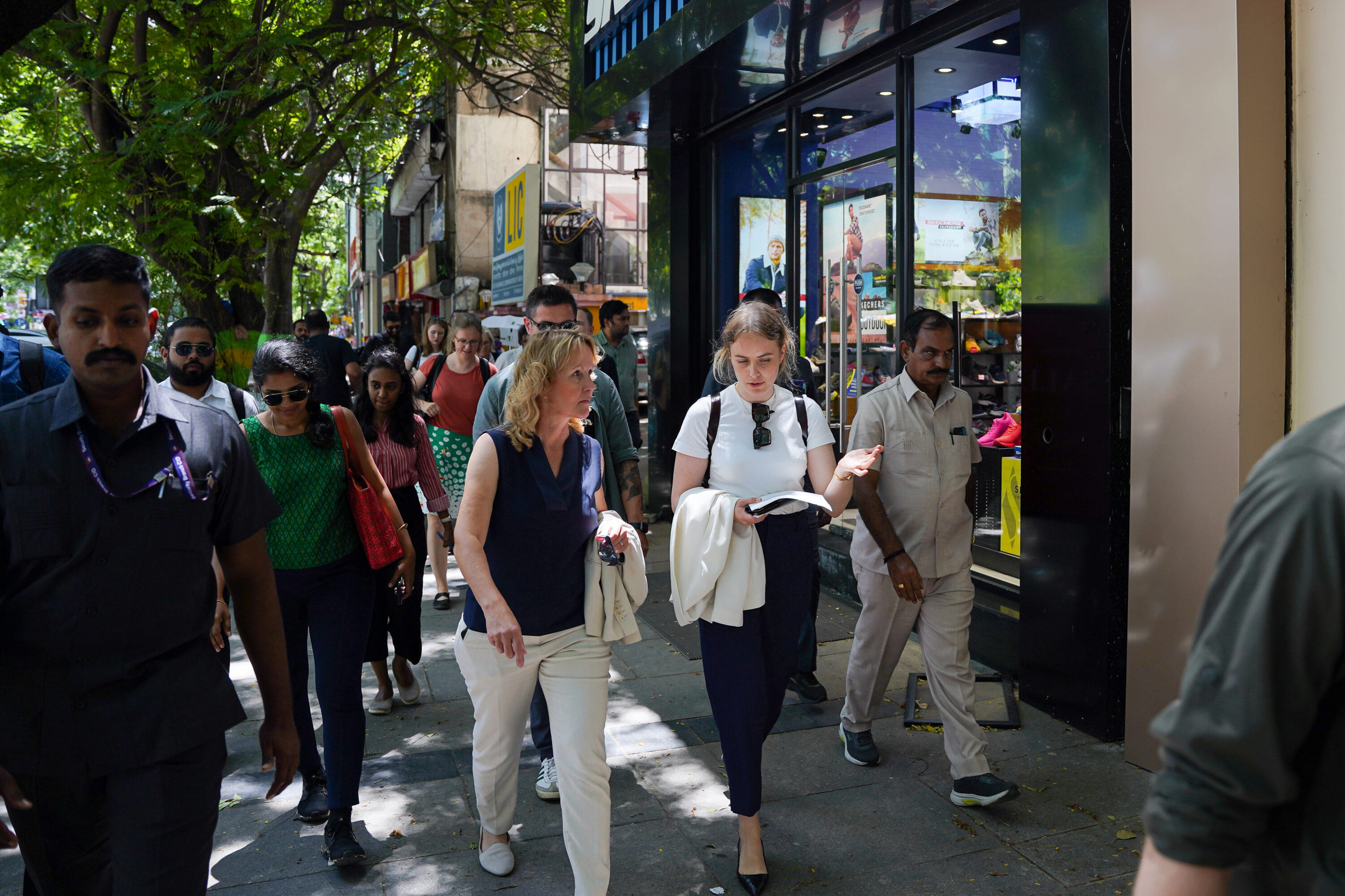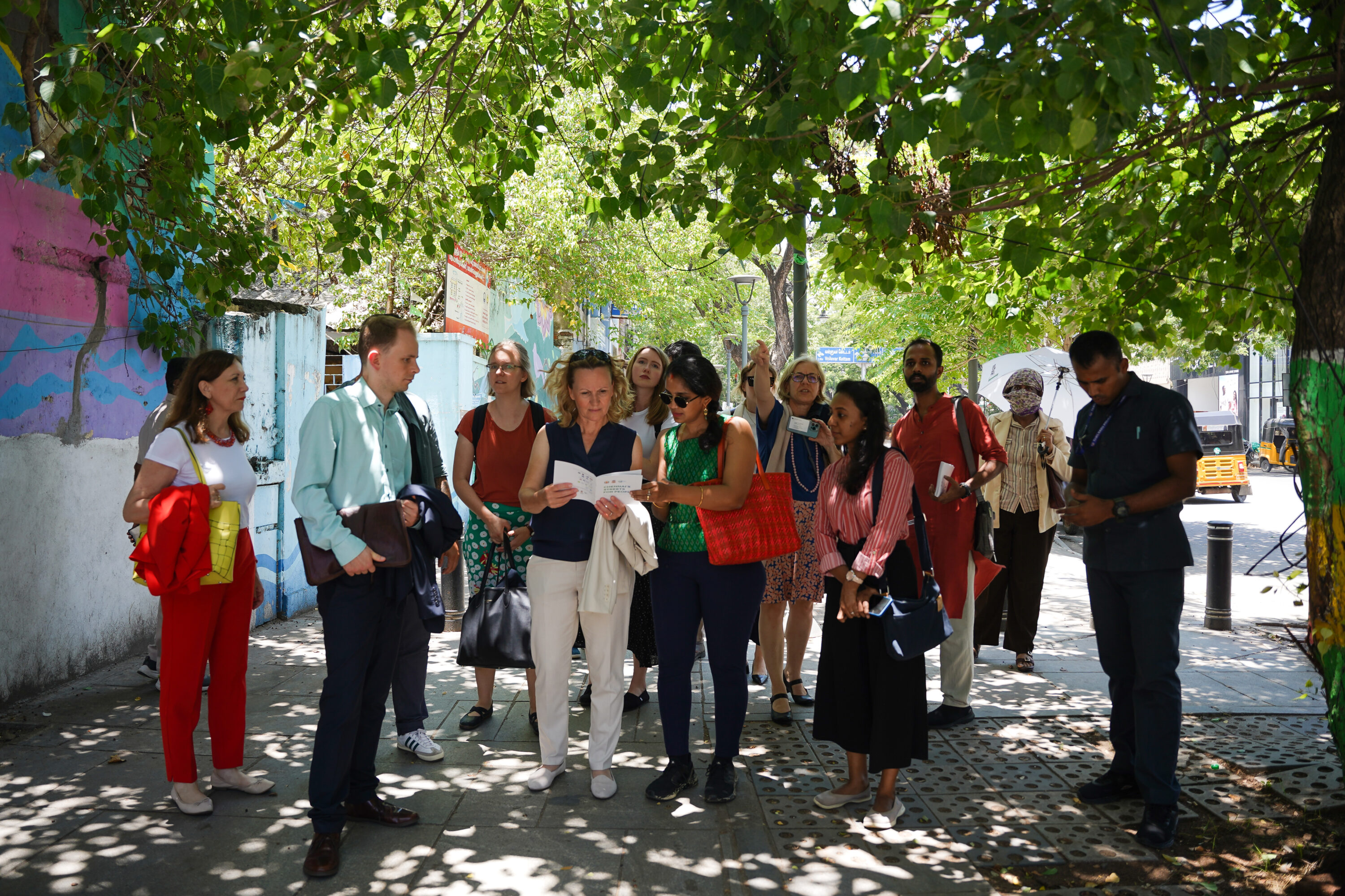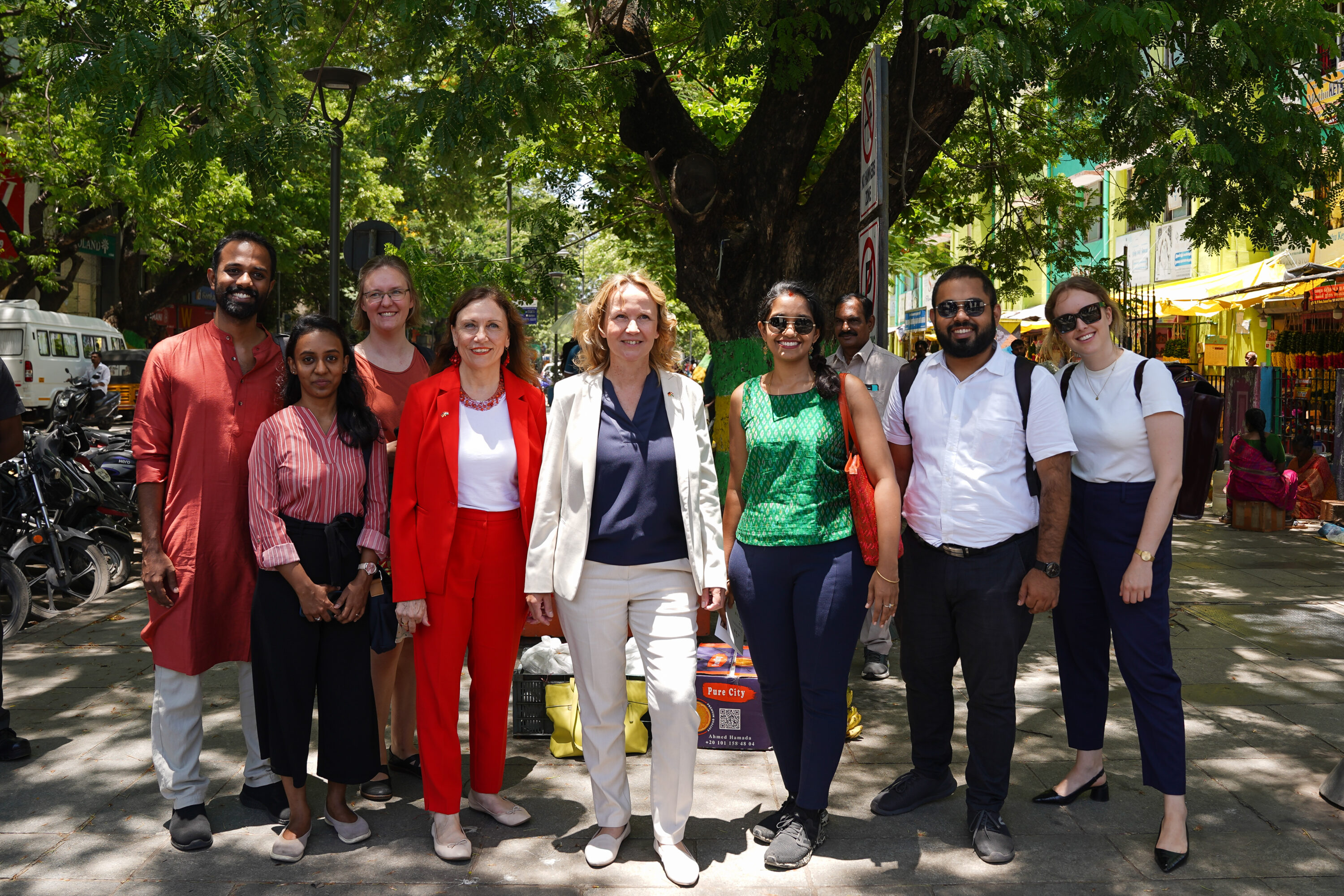 On 27th July 2023, the ITDP India team was delighted to organise a visit to the Pondy Bazaar Pedestrian Plaza for Ms. Steffi Lemke, Minister of the Environment, Nature Conservation, and Nuclear Safety of Germany, along with a delegation from the Ministry.
