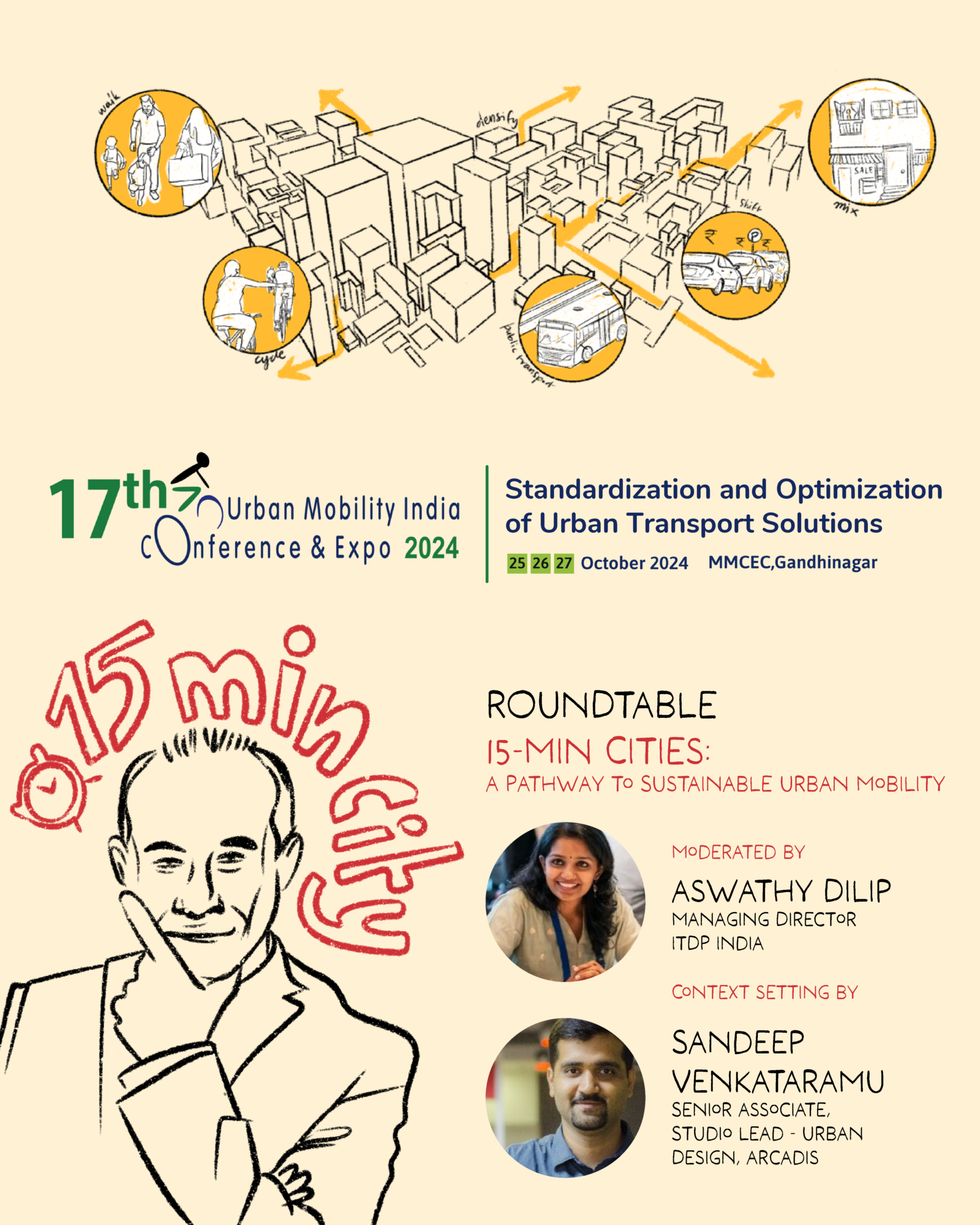 At the 17th Urban Mobility India Conference and Expo, held in Gandhinagar on October 26, experts came together in a panel discussion organised by ITDP India and Arcadis to explore Building 15-Minute Cities: Pathway to a Sustainable Urban Mobility Future.