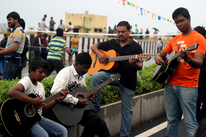 Where football and badminton attracted the young, spontaneous games of street cricket gave opportunities for families to unwind. Road art and storytelling sessions kept the kids engaged and were met with enthusiastic support from parents. Unexpected street performances lent an air of festivity to the event and had the crowd asking for more. But it was not all about celebrations. By bringing different social groups together, car-free Sundays have provided a platform to generate awareness about various issues in the city — one group chose to use the event to talk about cerebral palsy and the need for an inclusive society.