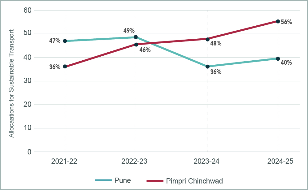 PCMC is steadily increasing its investment in sustainable transport, a positive trend that must continue to meet its NMT and public transport goals. Meanwhile, Pune must significantly boost its allocations to reverse its declining trajectory and stay on track with its mobility vision.