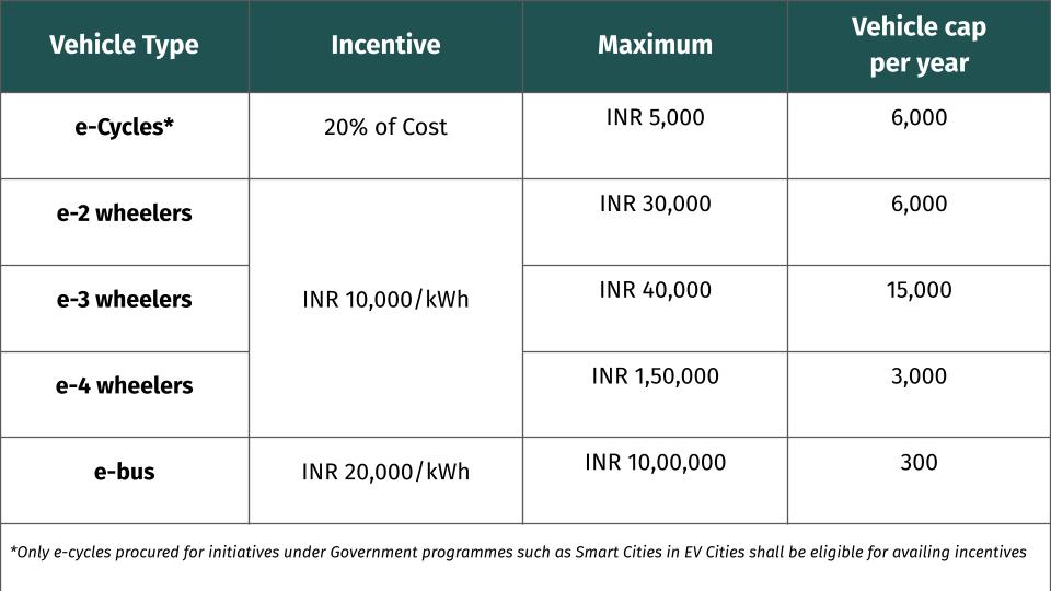 • Special demand-side incentives – To focus on the electrification of public transport and shared mobility, the policy seeks to incentivise only commercial vehicles.