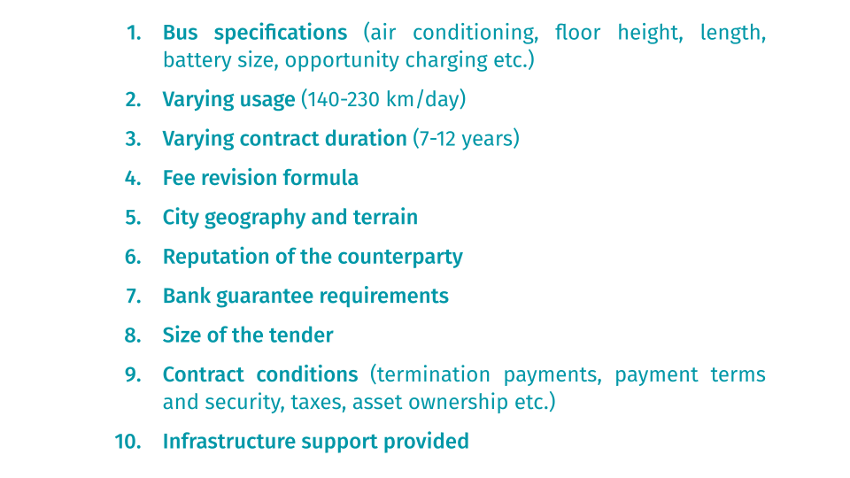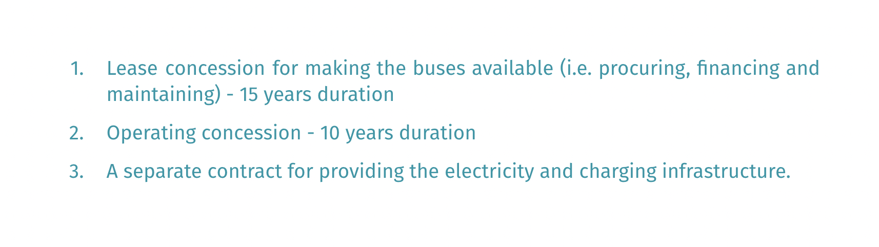 For example, a similar arrangement is seen in case of Transmilenio (Bogota) where the procurement of E-bus is split into three parts –