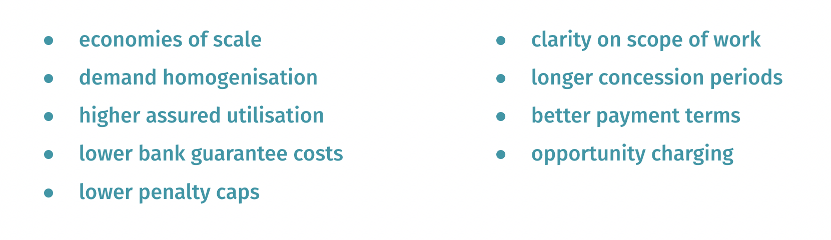 - Simplified contract administration – The bid document need not specify any minimum assured kilometres and compensation in the event of over/under achievement, thus simplifying contract administration as well as risk of STUs to pay for under-utilisation.