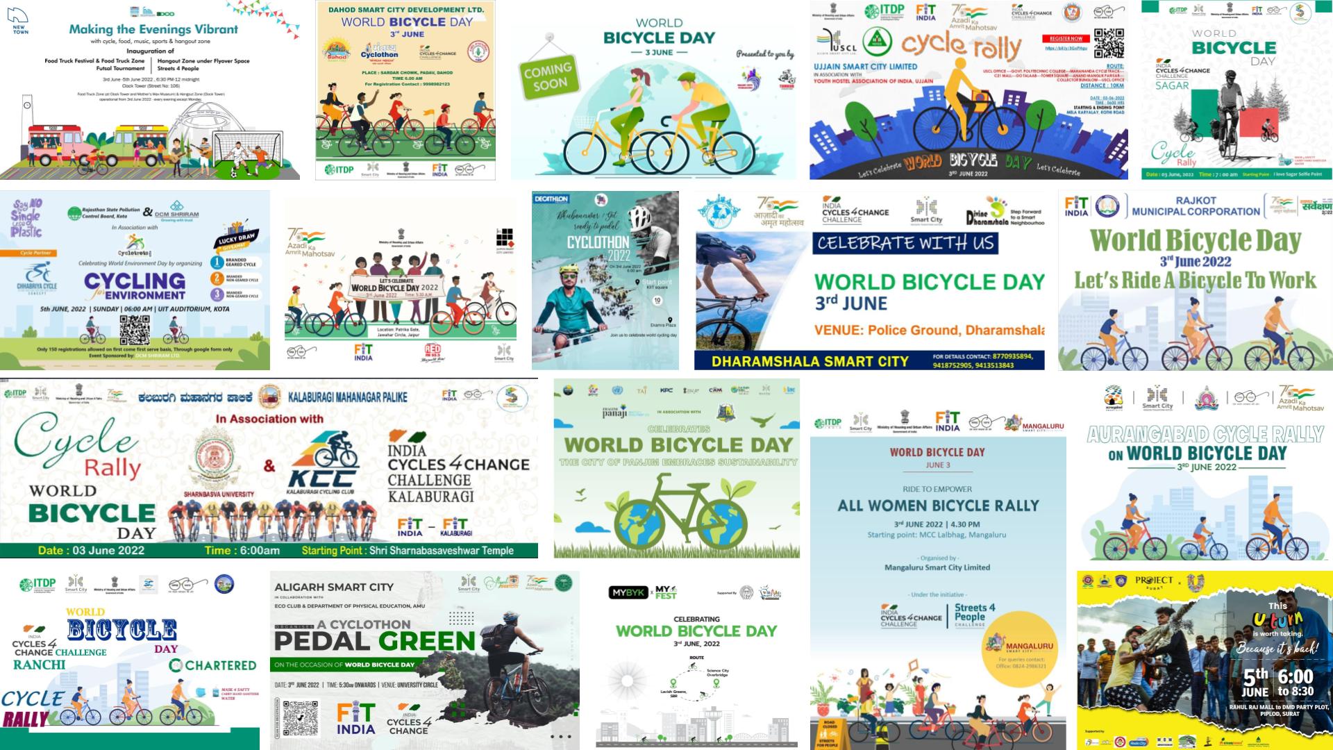 Demonstrating their commitment to transform themselves into cycling-friendly cities, on World Bicycle Day over 20 cities pledged to adopt the “Healthy Streets” Policy, which prioritises walking, cycling, and public transport to enable all citizens to safely access work, education, social opportunities, and other essentials. Over 20 cities started work towards implement “30 KMPH Slow Streets” to reduce the risk of fatalities for pedestrians and cyclists, and to institutionalise “Open Streets” programmes so people can experience their streets as open, public spaces, week after week!