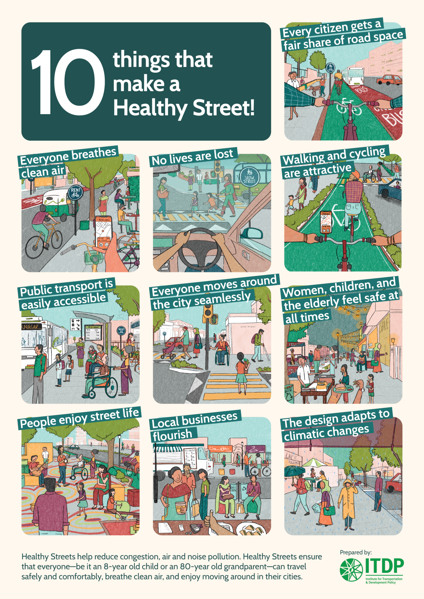 The Vision illustrates 10 things that make Healthy Streets. The vision is now translated into more than ten languages and adopted by 9 Indian cities!