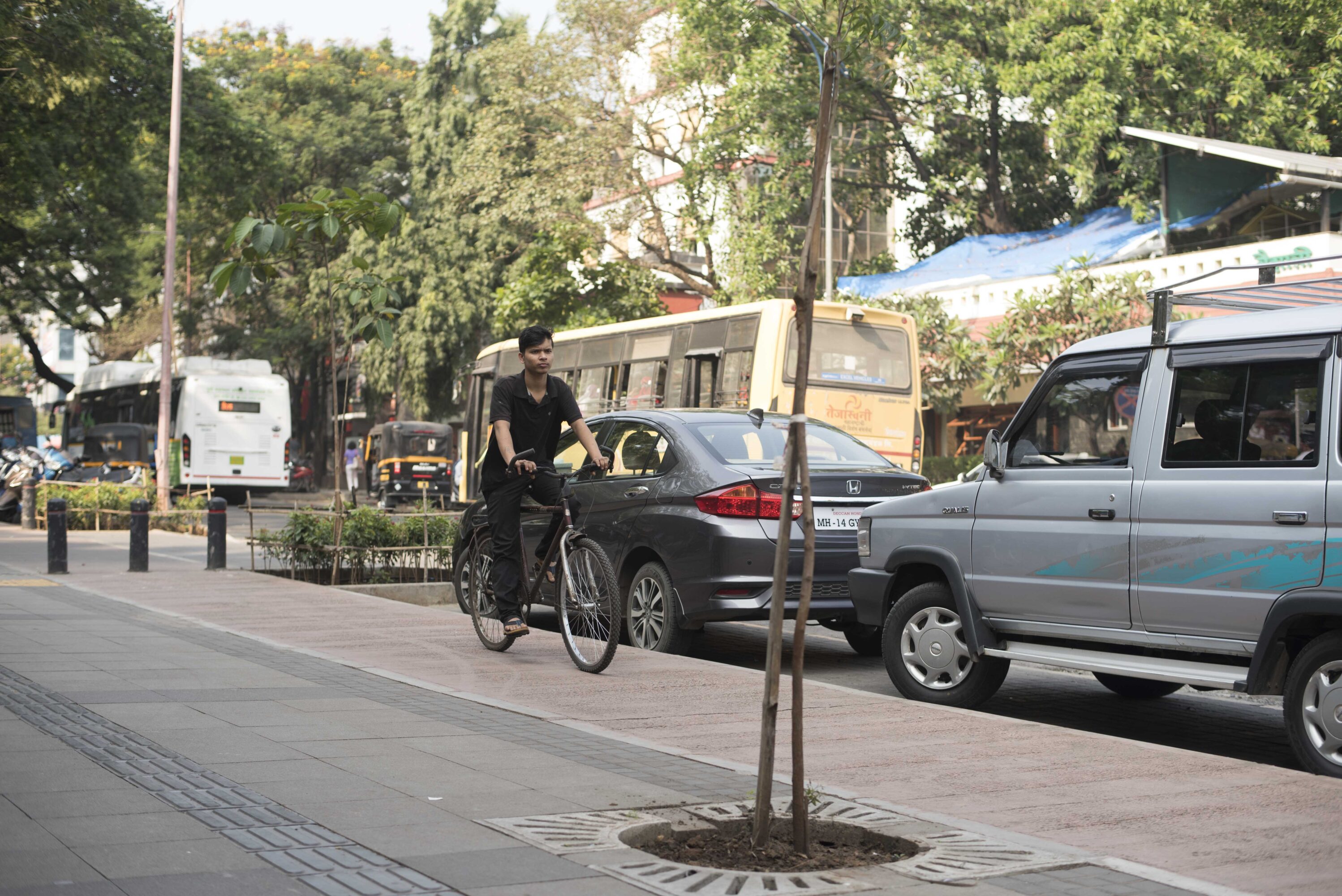 Despite Pune’s efforts to improve safety and comfort for pedestrians and cyclists, it was not an uncommon sight to see them still using the carriageway and not the footpaths or the cycle tracks. Despite spaces being allocated for parking, vehicles still haphazardly encroached on road space. People also had trouble accessing the city’s public transport infrastructure.