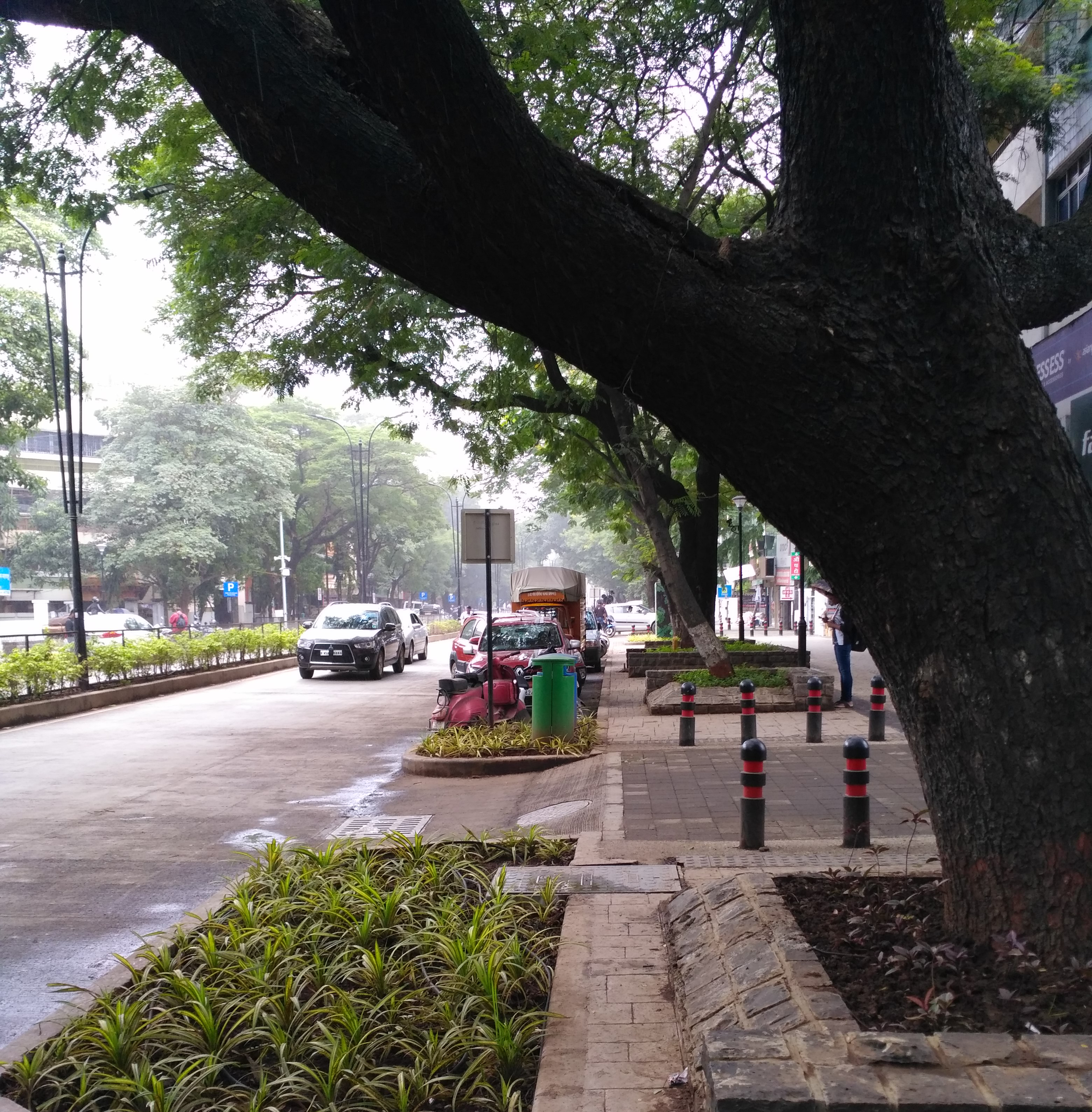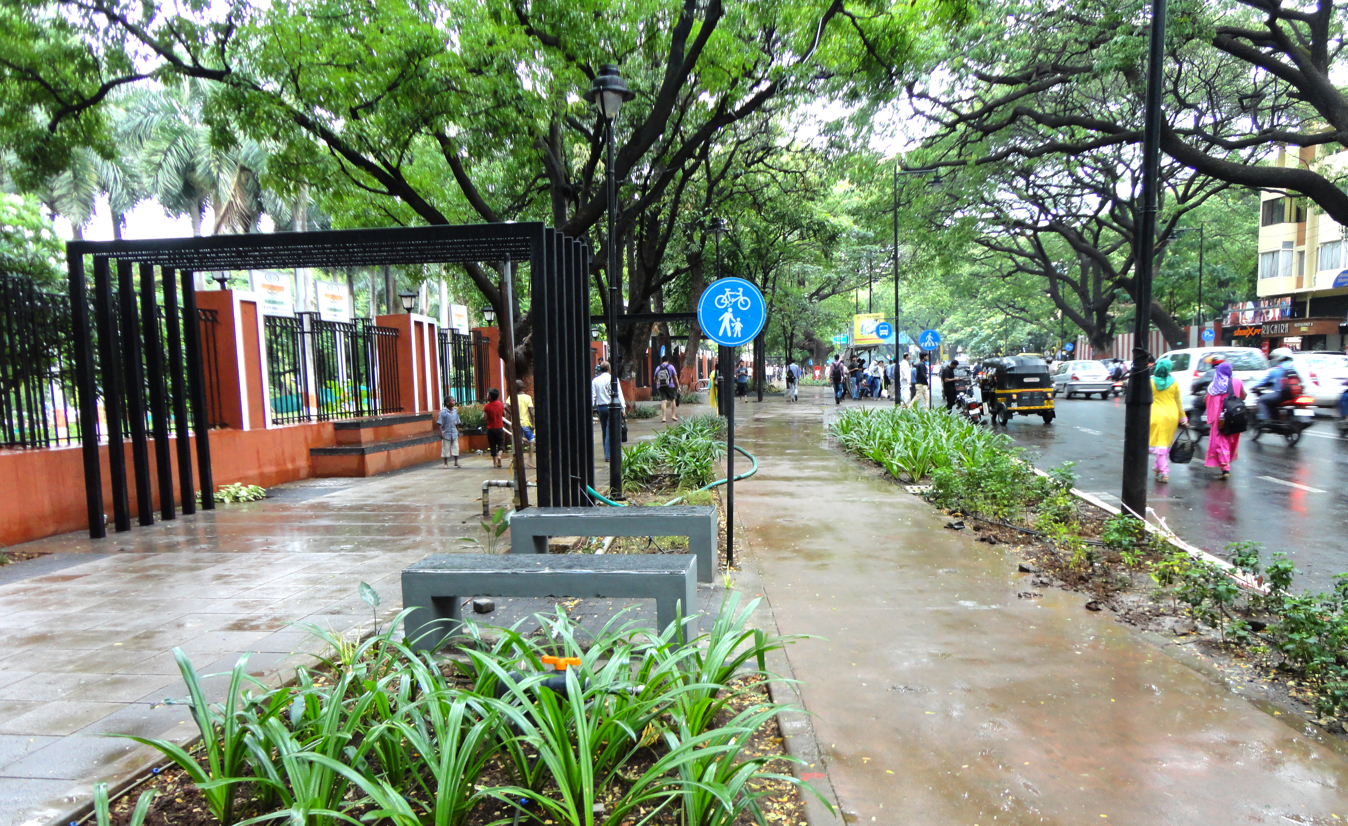 Similarly, JM Road, being revamped by Oasis Designs Inc., has also been kicked off on a 300m stretch as part of the first phase.Streamlining the haphazard parking has helped reclaim space for the people, enabling a wider footpath and cycle track. Green spaces serve as buffers to segregate the two speeds of walking and cycling. Bus stops have been located so as to allow for smooth flow of pedestrians and cyclists.