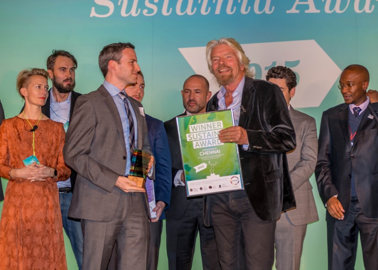 As evidence of the increasing number of transformative transport projects already making waves around the world, the 2015 Sustainia Award was presented to the Corporation of Chennai for their work with ITDP to improve pedestrian and cycling conditions throughout the city. The award recognized the bold actions taken to commit 60 percent of the city’s transportation budget to non-motorized transport and the vision to dramatically expand Chennai’s pedestrian network. The city has already rebuilt 26 streets with wide, continuous footpaths, with 60 more streets announced. Notably, the improved streets have seen no new cases of road crash fatalities, highlighting the many benefits of sustainable mobility. The award came as Chennai was experiencing severe flooding, underscoring the critical importance of both mitigation and adaptation in addressing climate change.